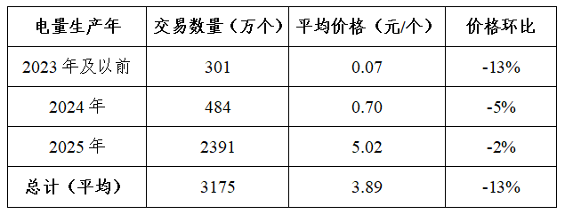 12月22日-12月28日,广州电力交易中心平台绿证交易3175万个,较上周环比增加51%;交易均价3.89元/个,较上周环比下降13%。2025年累计交易量39294万个,交易均价2.76元/个。