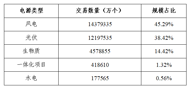从不同电源类型绿证交易规模情况看,广州电力交易中心平台风电项目风电交易数量最多,交易规模为1438万个,占交易总45.3%,环比增加83.9%。光伏项目绿证交易规模次之,交易规模为1220万个,占交易总量38.4%,环比增加13.2%。