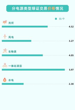 从不同电源类型绿证交易价格情况看,广州电力交易中心一体化项目成交价格最高,平均价格为5.97元/个,环比上涨76%。光伏项目成交价格次之,平均价格为4.52元/个,环比下跌3.4%。