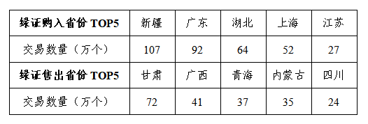 广州电力交易中心平台绿证交易购入省份排名前五为新疆、广东、湖北、上海和江苏,绿证交易售出省份排名前五为甘肃、广西、青海、内蒙古和四川。
